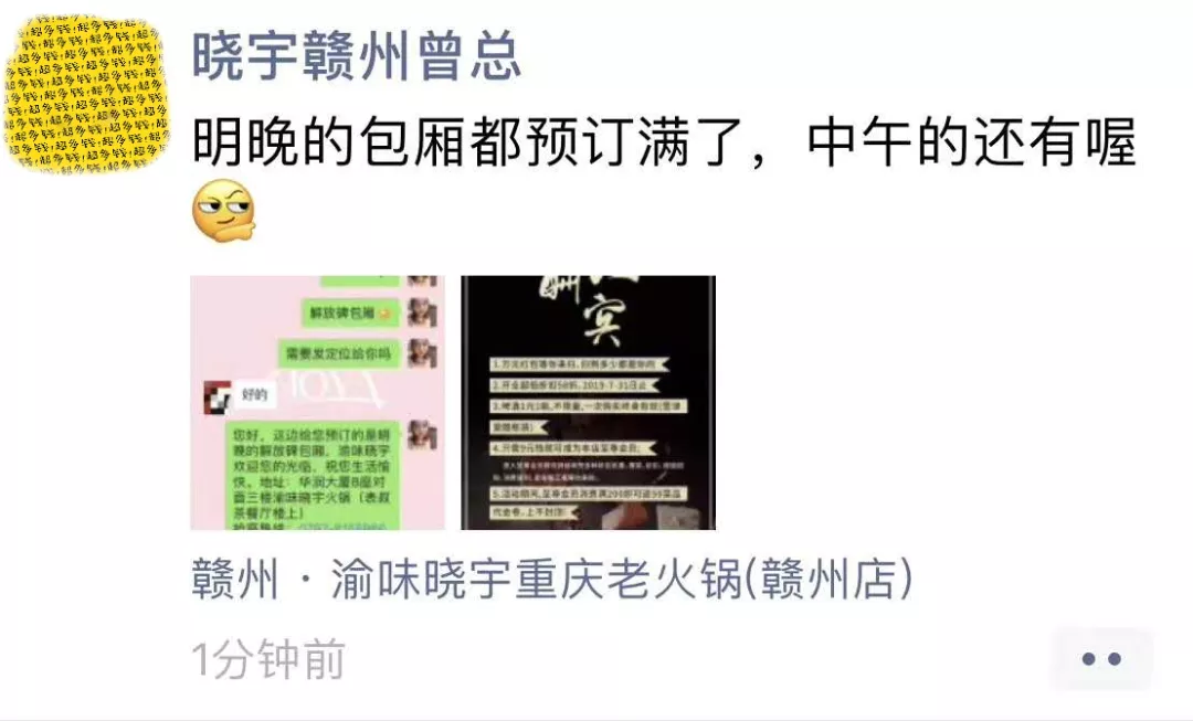 【活动期间商家朋友圈--顾客爆满,包厢预订火爆】