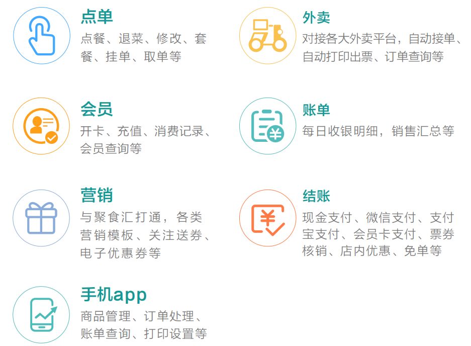 聚食汇·店+,是针对简餐类商户推出的一款集点餐、结账、外卖、促销、会员、管理与一体的安卓版智能收银系统。