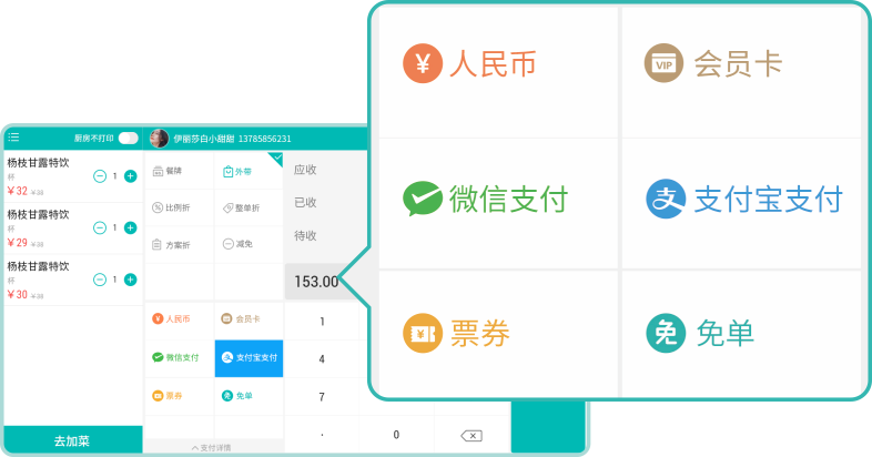 支持多种主流方式付款,提升收银效率,告别排队。