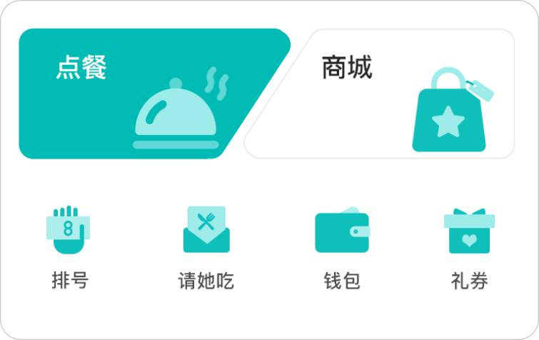 简洁大方的设计风格,顾客观感更舒心;四大模块功能整合,页面切换更快速;丰富的营销功能展示, 刺激消费欲望,提高餐厅运营效率。