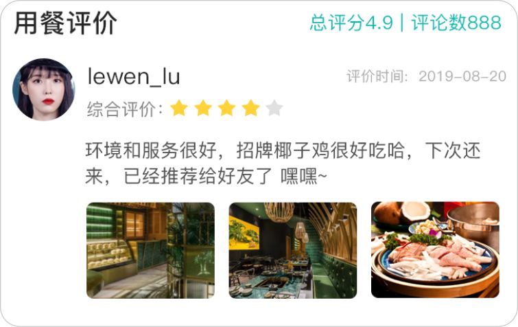 在点餐支付后和查看订单时,都能提醒顾客用餐评价,商家可挑选优质评论展示,增加顾客好感,吸引更多顾客下单。