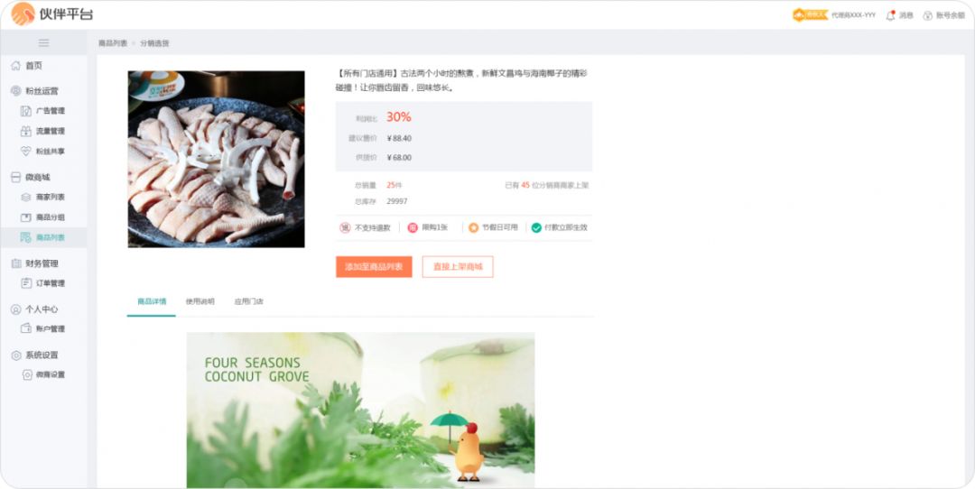 供货商:有货源的商家将商品上架至微商城,可选择直销或分销。