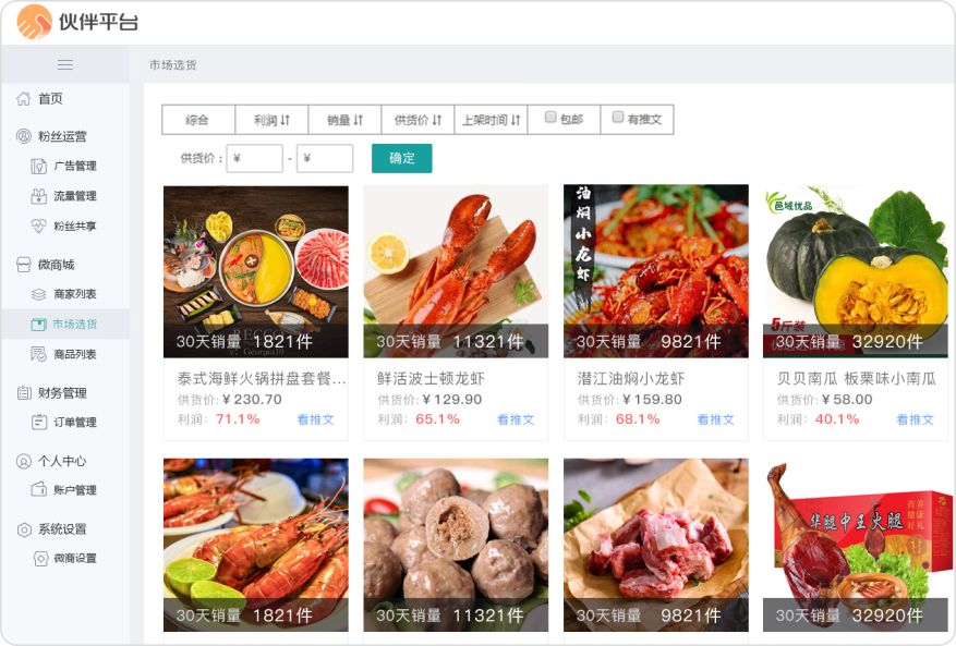 流量主:有流量无商品,也可通过微商城海量的优质商品,选货销售。