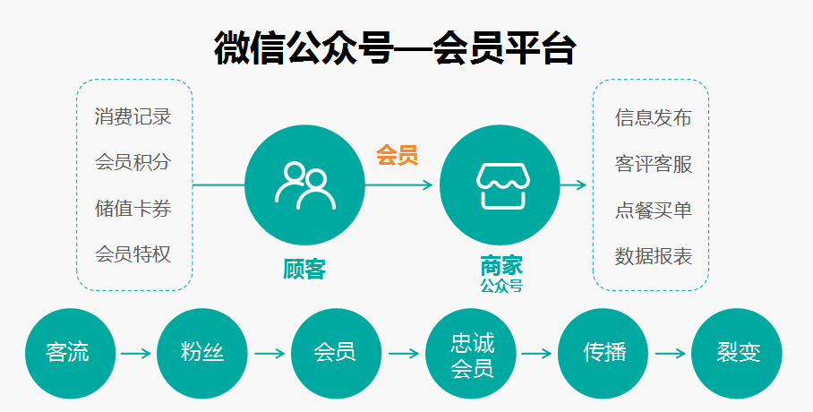 公众号、微餐厅、支付后设置三大流量入口,通过扫码点餐、支付、会员营销、点单、排号等工具和页面广告位让顾客自动关注或者添加好友。