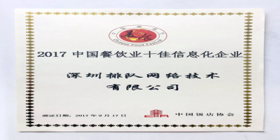 排队网摘得“2017年中国餐饮业十佳信息化企业”奖2017-10-16