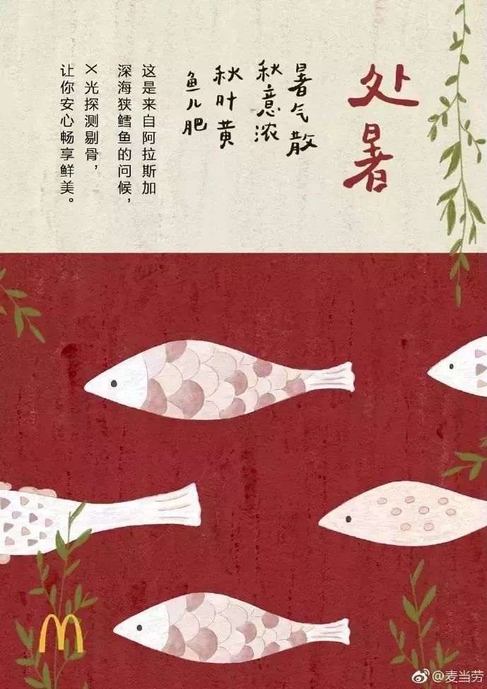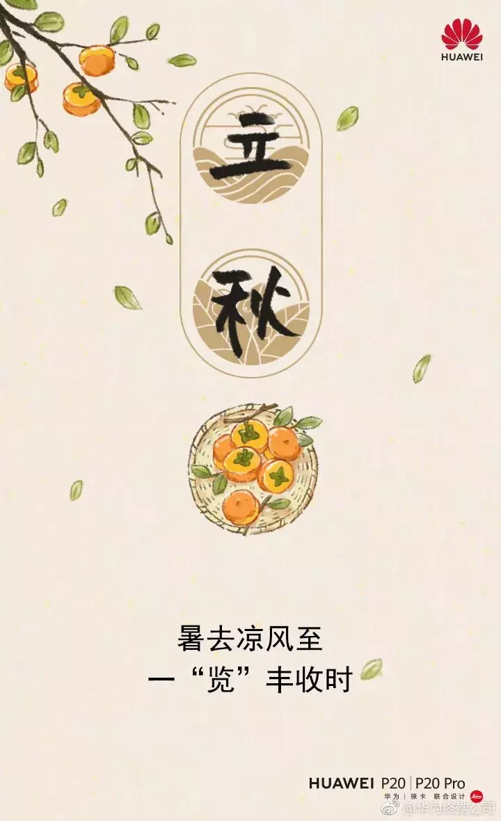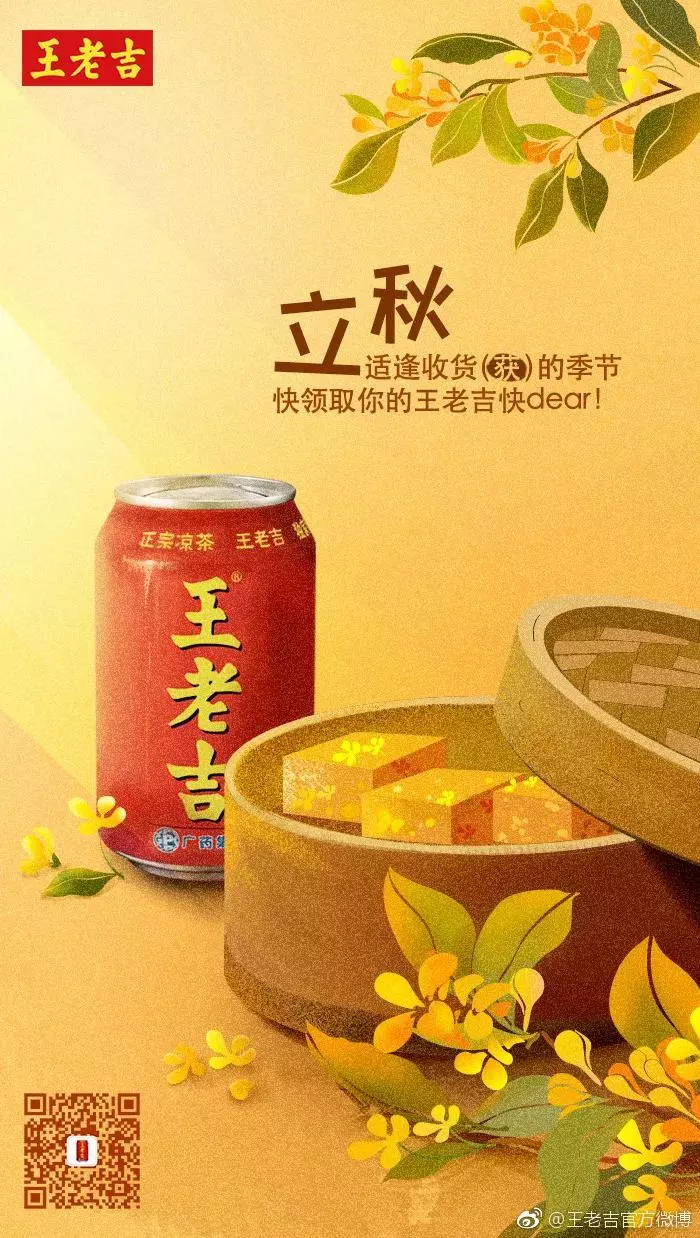 海报,是立秋借势的常规打法,告别夏季、贴秋膘均可作为角度,秋叶、桂花、柿子可作为立秋的代表元素使用。