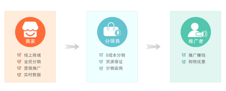 如排队网微商城就有这种模式,无论是商家(供货商)、分销商、还是推广者,通通都能通过前期的“主动”转化为后期的“被动”。