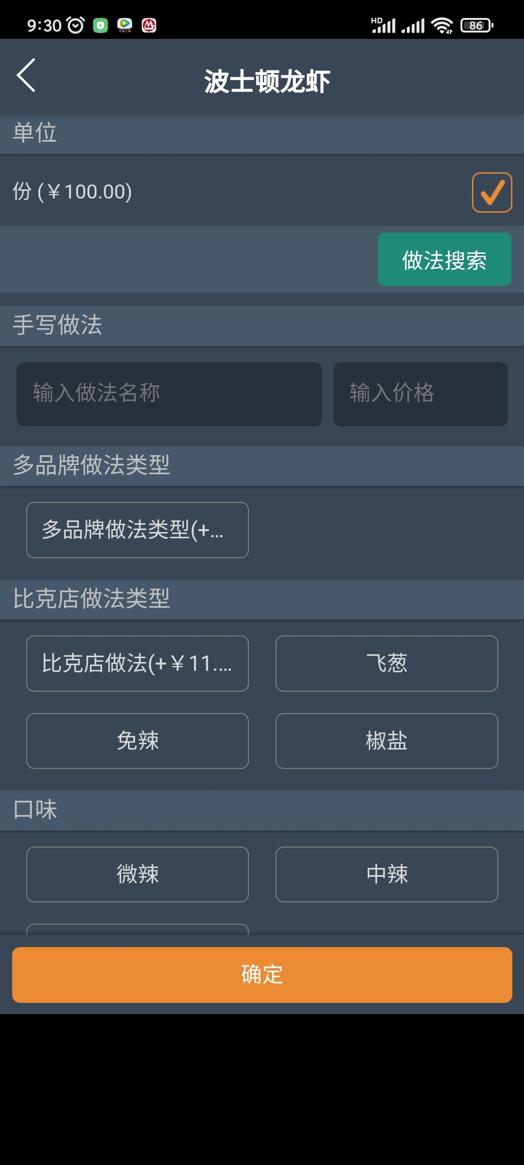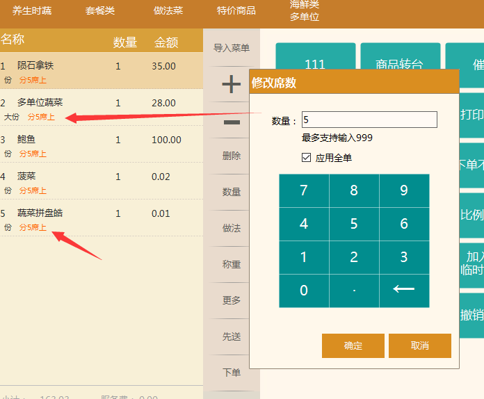 4.点菜界面,数量的“+”/“-”默认使用默认单位(开关控制)