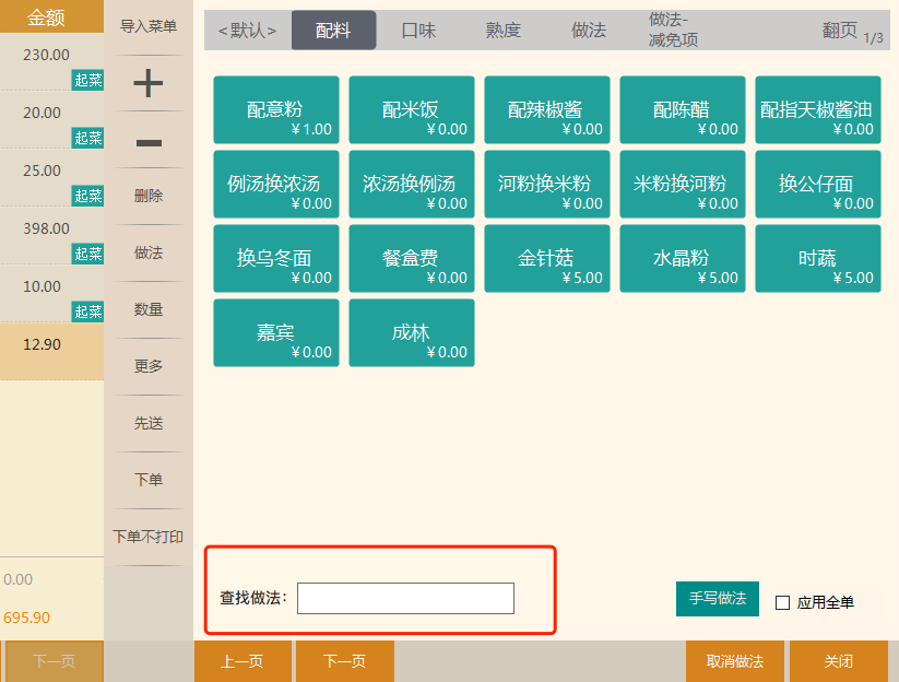 5.点菜界面,点击菜品空白处可弹出“更多”界面