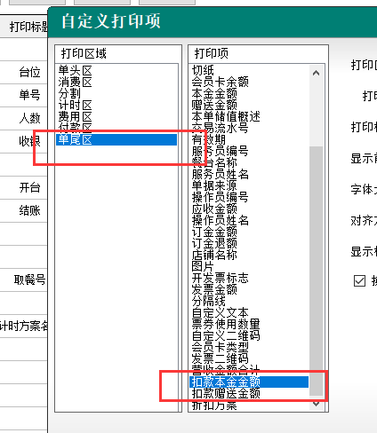 13.预结/结账小票-单尾区,新增“扣款本金金额”/“扣款赠送金额”打印项
