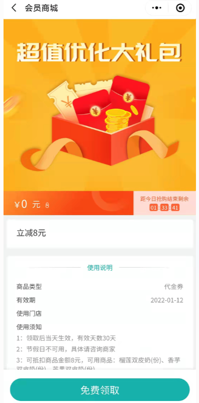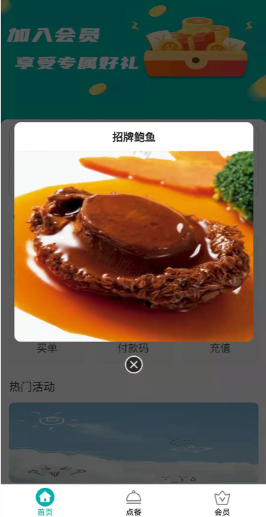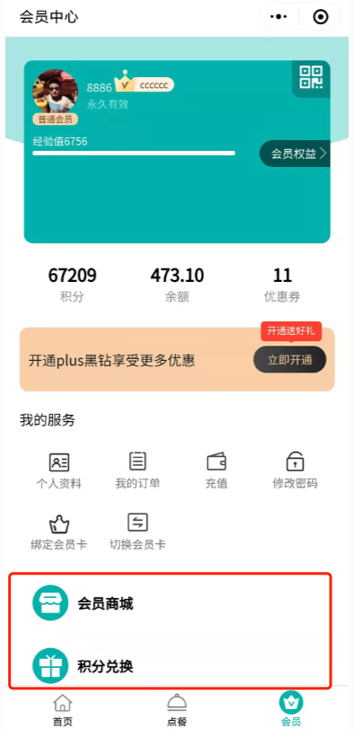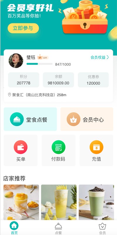 3.小程序点餐-首页,新增可设置显示“会员信息"(效果以实际发布的为准)