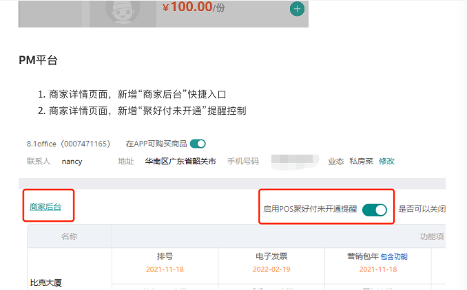 2.新增“启用POS聚好付未开通提醒”(PM开关控制)
