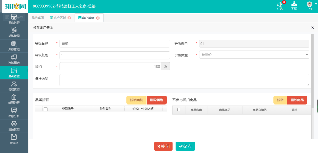 针对不同批发客户可设置不同的批发价格、优惠折扣
