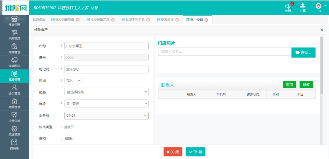 这种零售为主批发为辅的经营业态用排队网零售SaaS是非常合适的。