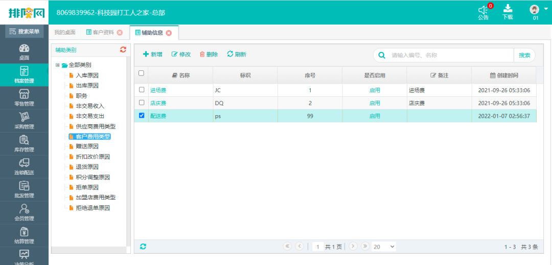 费用名称可在档案管理-辅助信息-客户费用类型中进行添加