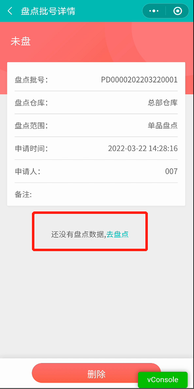 接着会有一个未盘的批号显示,点击 【去盘点】