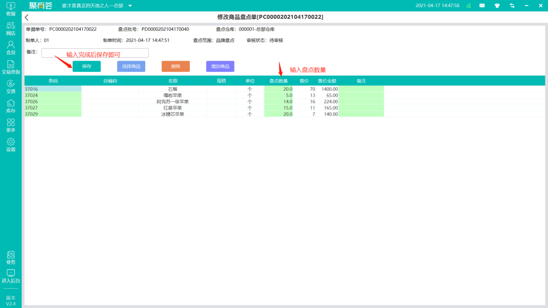 第二种是用POS进行盘点,先记录数量再回到POS上汇总,今天我们一起来看一下这两种方案如何操作。