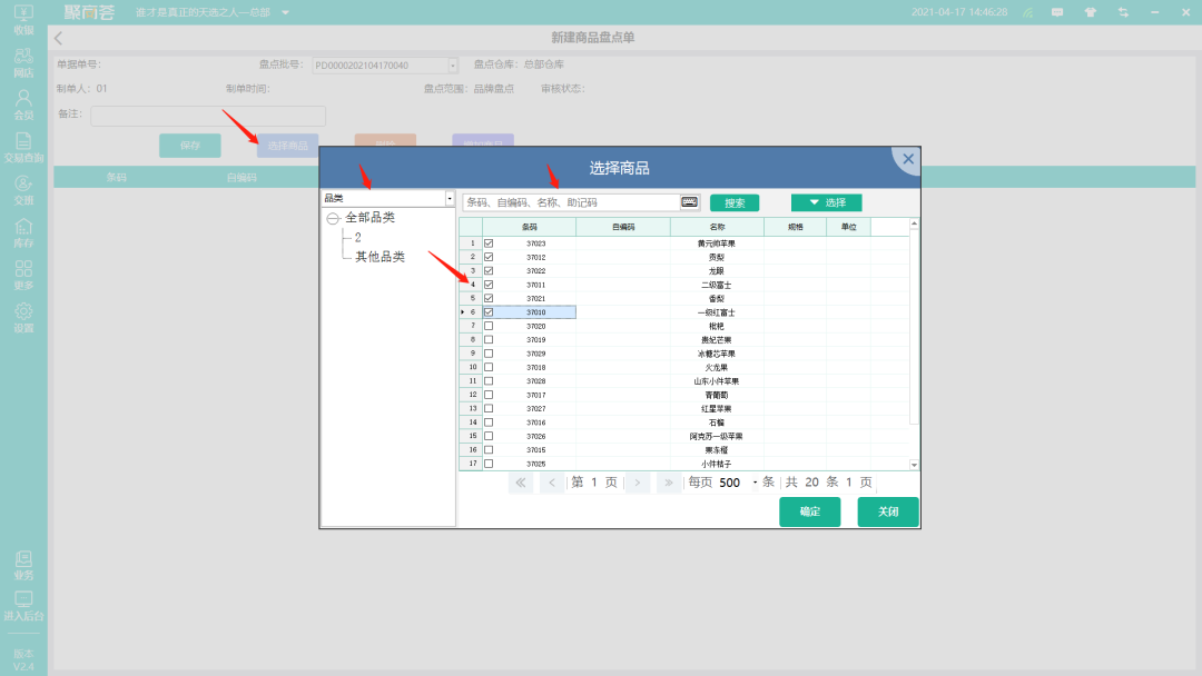 可按某个品牌或者多个品牌进行盘点该品牌下的商品,盘点时只盘了部分商品时,其他品类商品在差异处理单中显示盘点数量为0