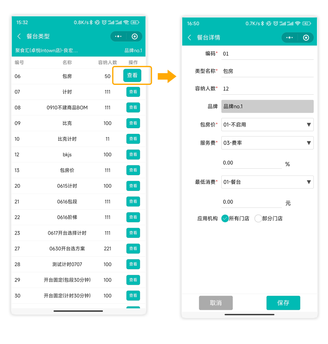 自定义消费区域的名字,设置是否接受预定,注明是否靠窗等信息