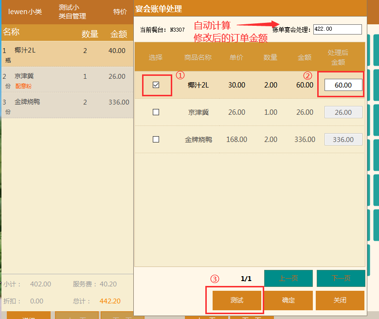 ④酒楼模式新增【宴席菜品处理】功能