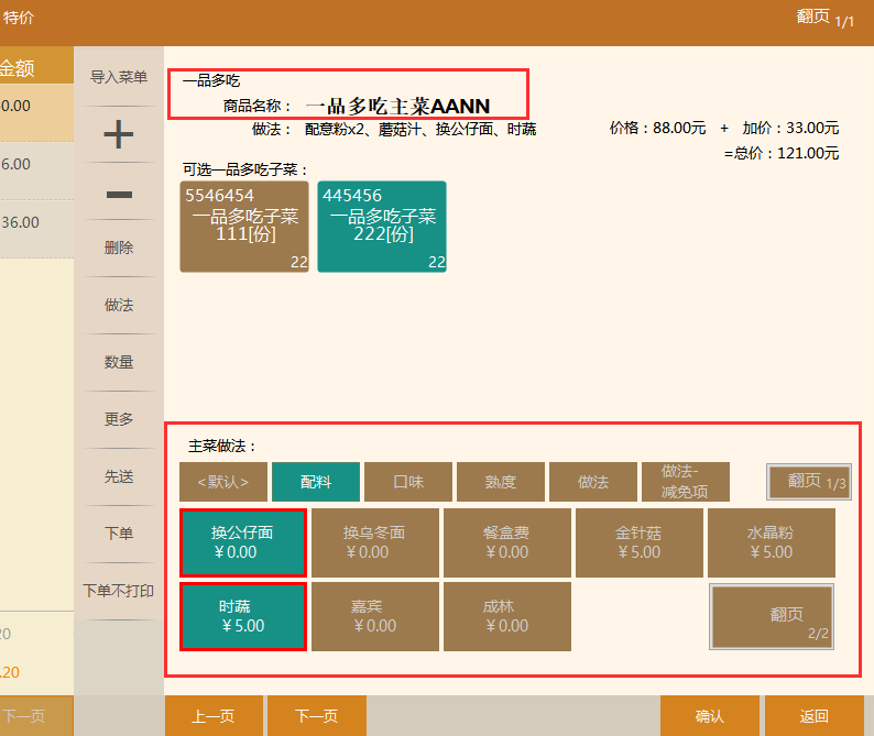 适用场景:比如烧鹅拼烧鸭、拼猪脚,最终上菜就是一个套餐包含多种菜品。