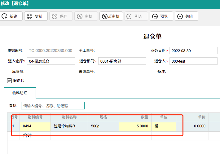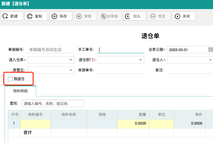 ②库存管理-退仓单新增【假退仓】功能