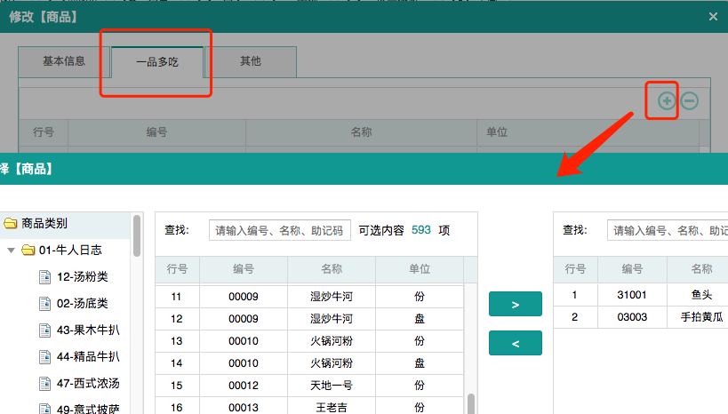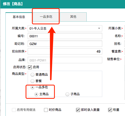 ①基础资料-一品多吃主菜,支持直接选择现有菜品做为子菜