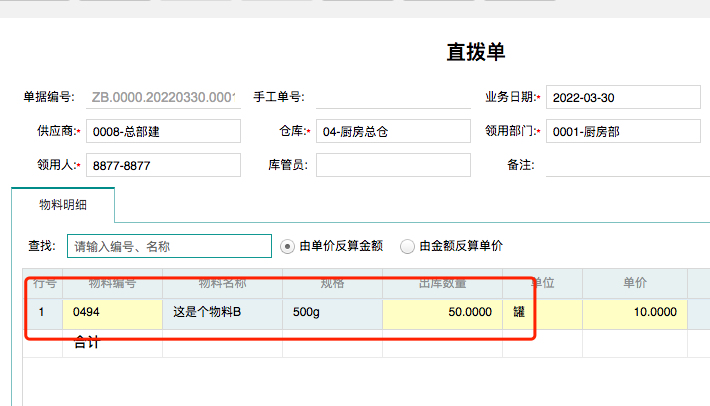 盘点要求对所有物料盘点,但有些客户的物料是存在放部门,盘点结束后,部门需要重新领用。基于上述场景,减少盘点后手动创建领用单。