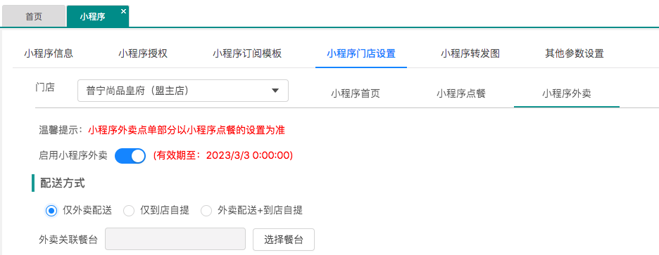 ·小程序外卖启用控制(需先在pm开通)