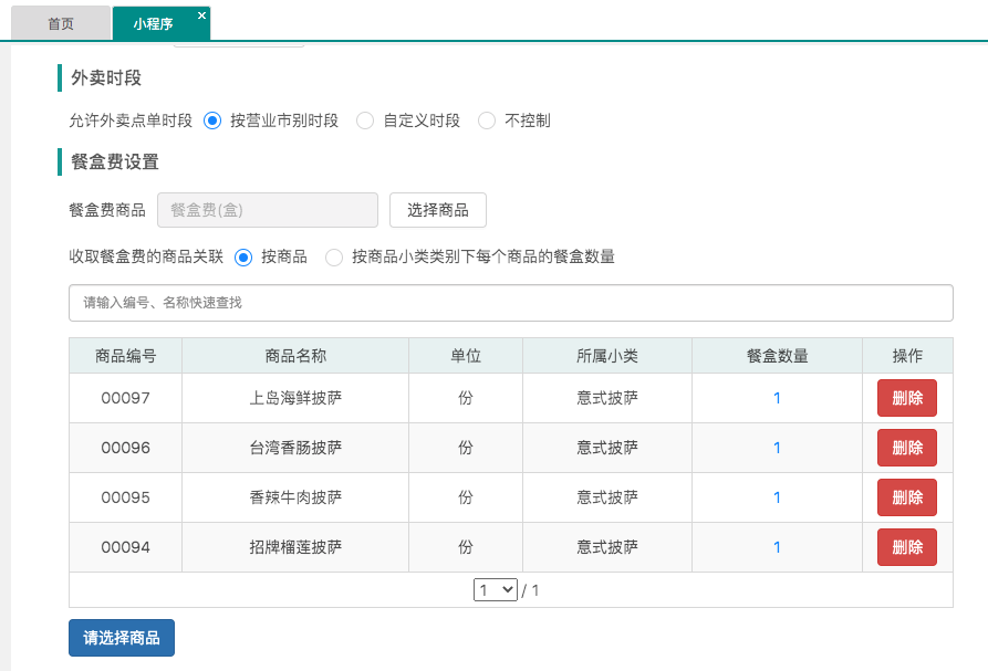 ·小程序外卖允许点餐时段设置