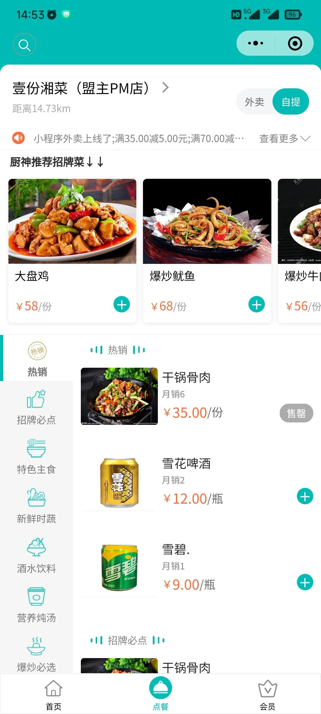 ·顾客在外卖小程序点餐页面可以切换到自提