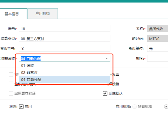 美团/饿了么代收结算方式,支持设置【营收/非营收/自动分配】