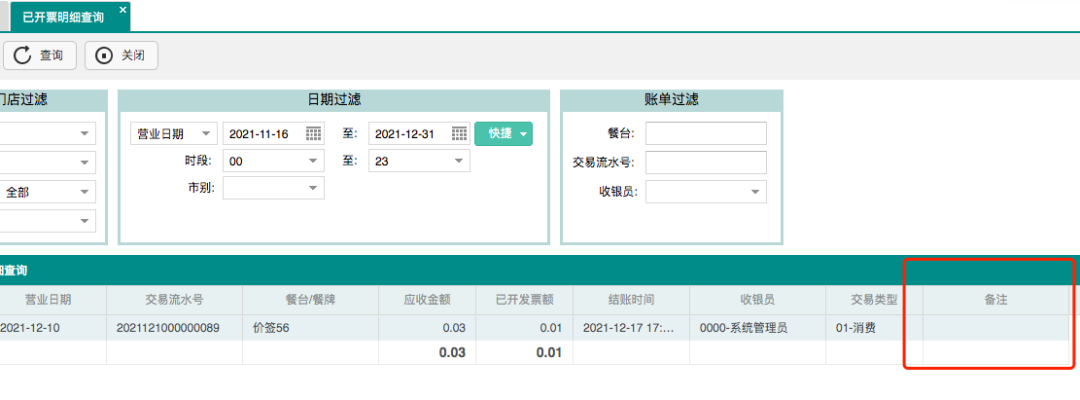 经营分析“已开票明细查询”增加【备注】列