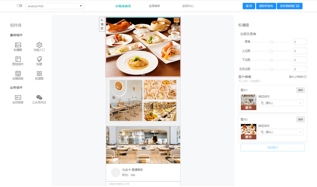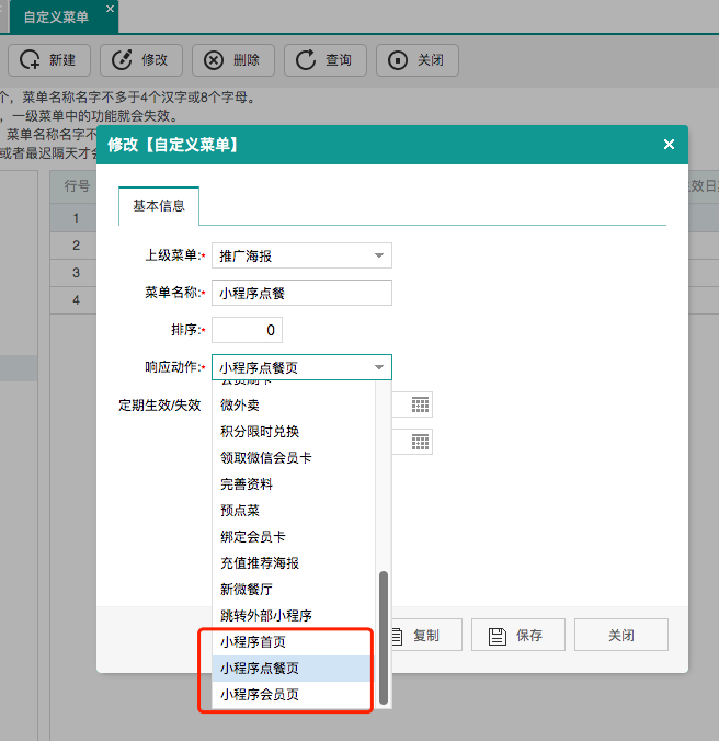第三方平台“自定义菜单栏”响应动作增加【小程序首页、点餐及会员】