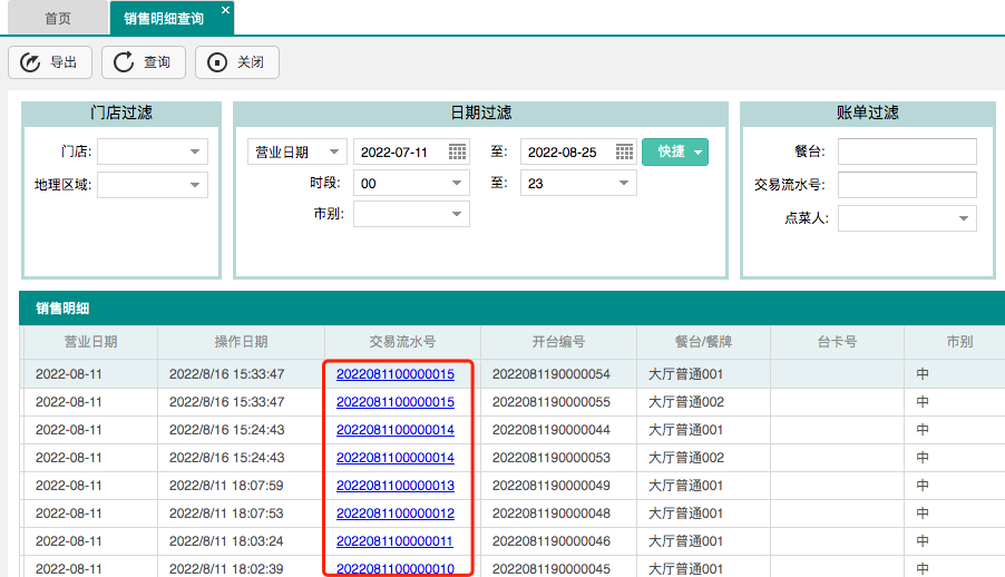经营分析“销售明细查询”-交易流水号增加穿透(弹出订单明细)