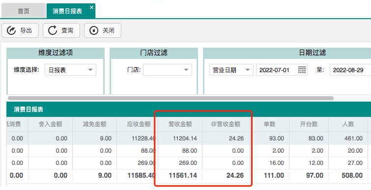 经营分析“消费日报表”增加【营收金额】及【非营收金额】列